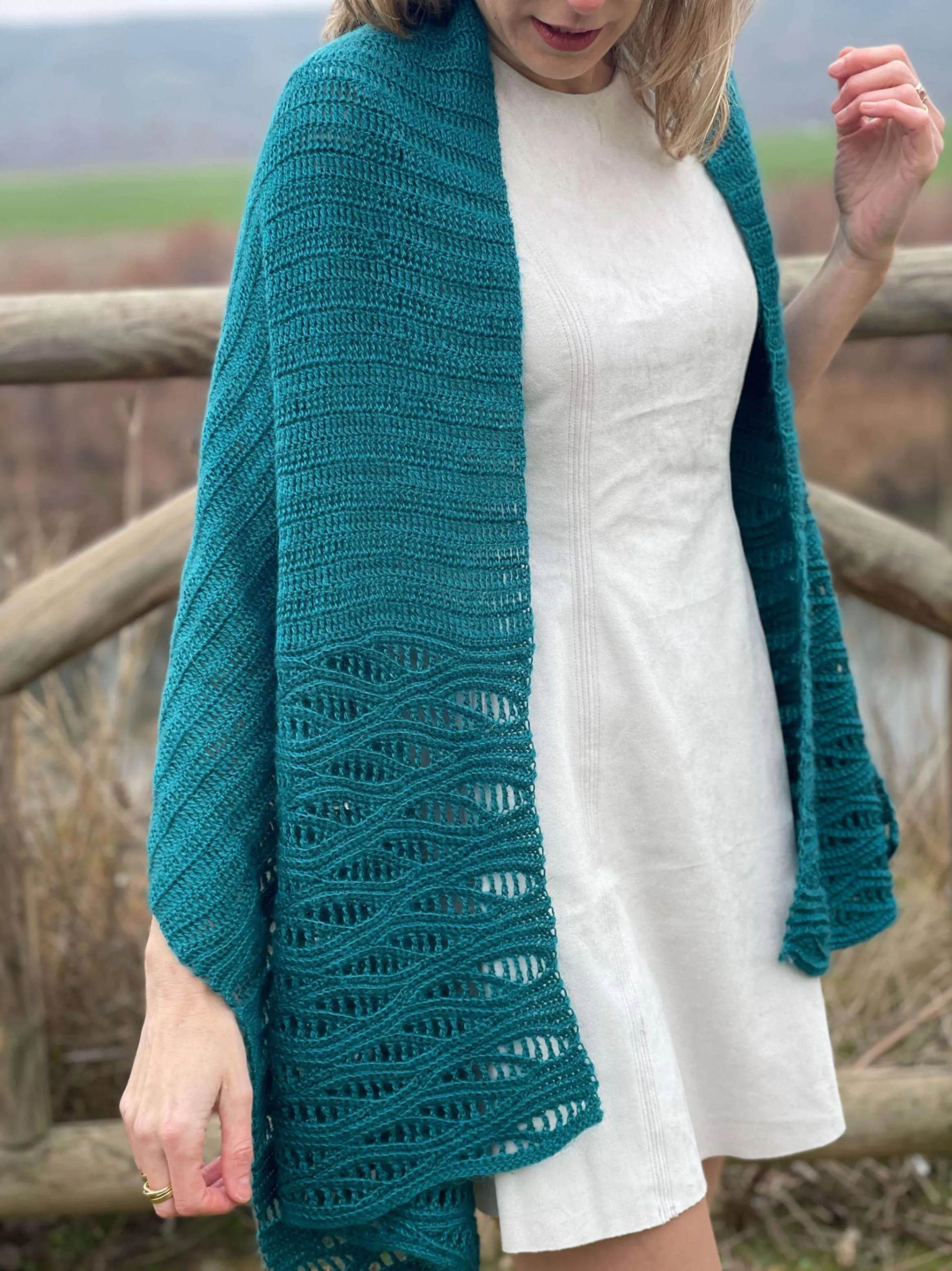 La preciosa estola Komorebi, un diseño de Lanamala Crochet